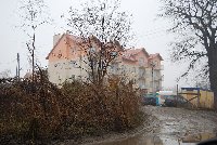 Na budowie widoczne są prace wewnętrzne, klatki mają pozamykane bramy i ciekawe daszki. W niektórych oknach otwarte są okna, poza tym pies z kulawą nogą...