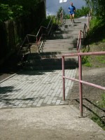 Wykonano całkowicie nowe schody, ułożono na nowo płyty chodnikowe i poprawiono skarpę. Zdjęcia przedstawiają stan schodów przed i po remoncie (teraz nawet pobiegać można).